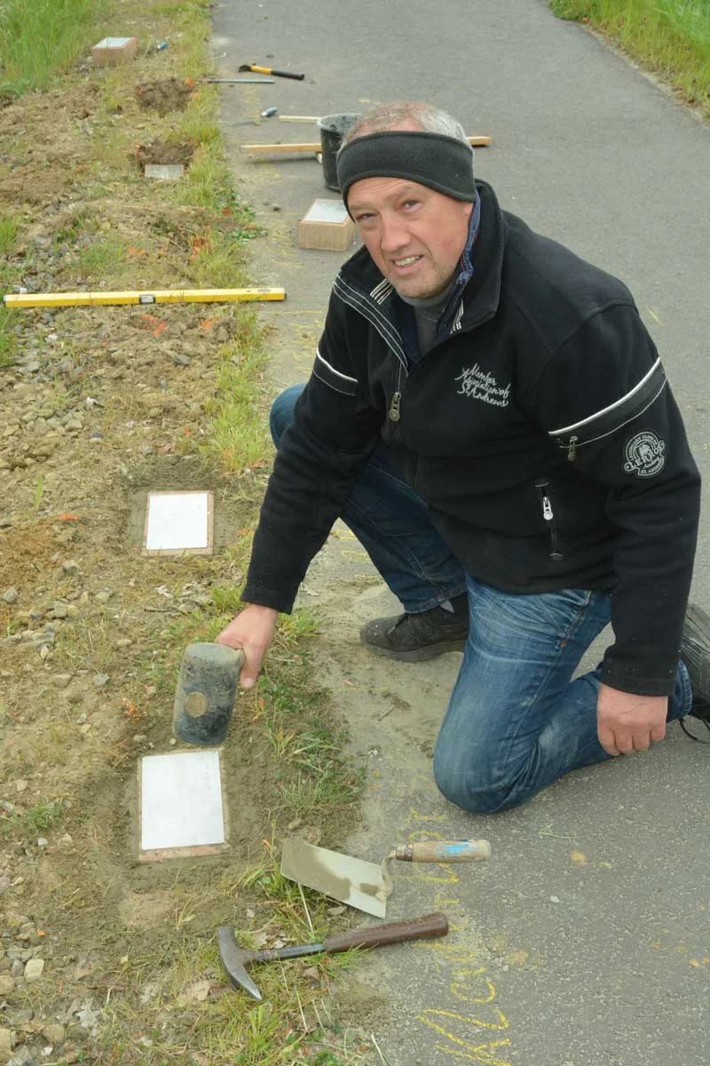Auch Mitglieder des Heimat- und Verkehrsvereins beteiligten sich am "Metersteinsetzen". Fotos: Georg Geers