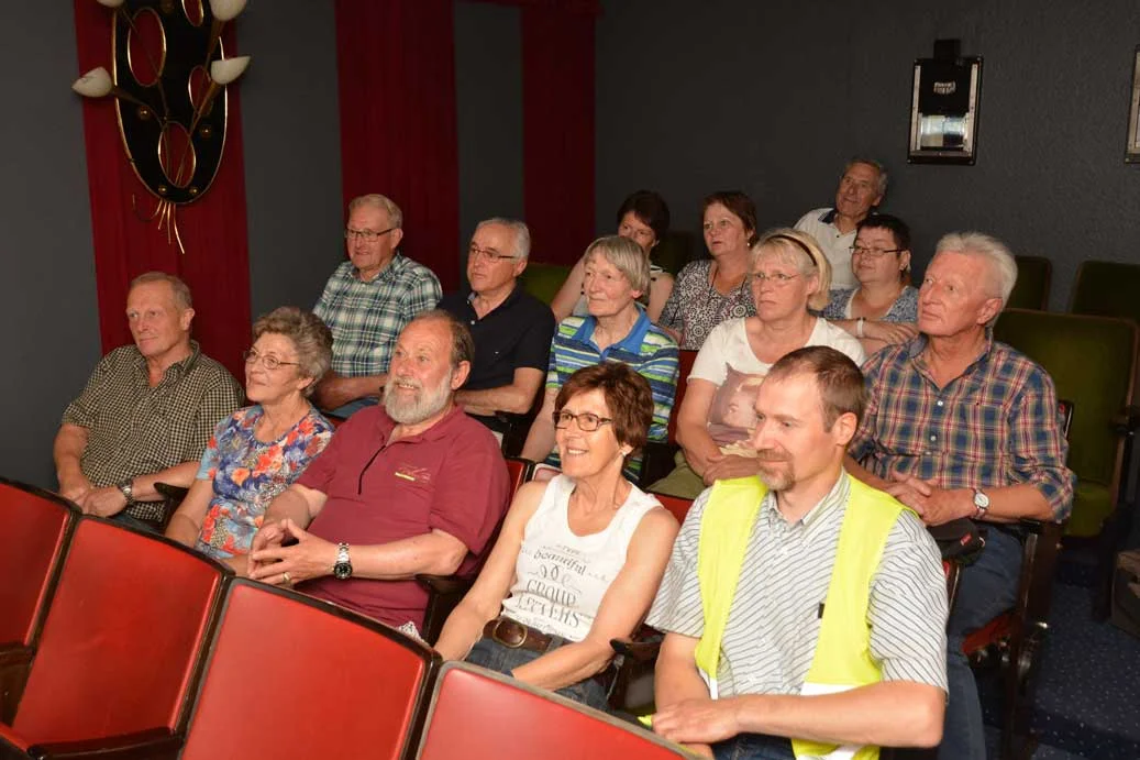 Rote Plüschsessel und ein früher Dick und Doof-Film versprühte Kinoromantik pur. Peter Schmitz, der die Tour organisiert hatte, bedanke sich im Namen der Teilnehmer für eine sehr interessante Führung.